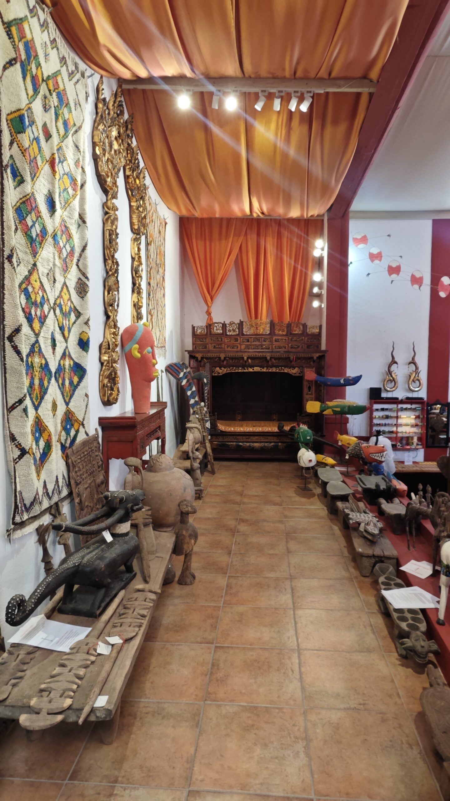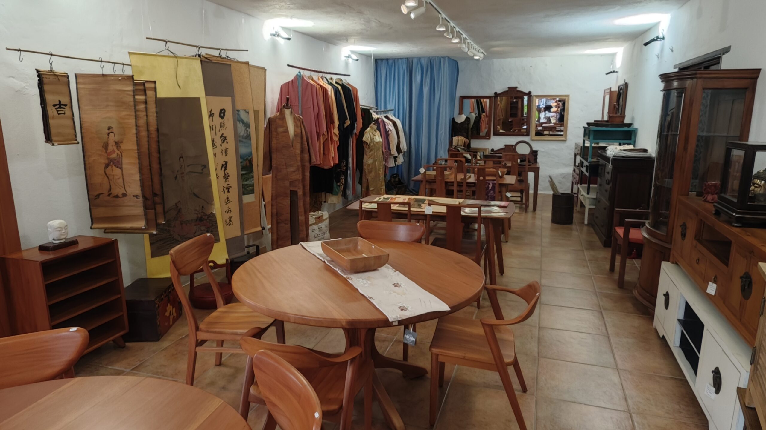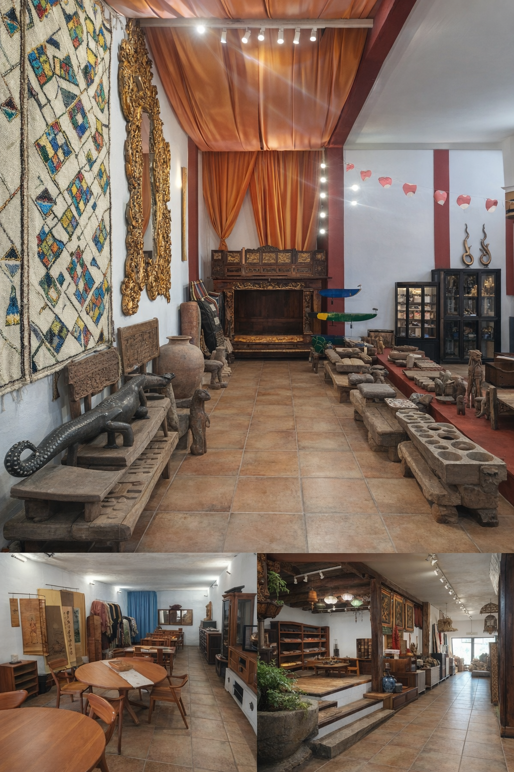 With over 500 m² of floor space, the property offers exceptional scope. The former cinema has been elegantly converted into a shop/showroom dedicated to oriental furniture and antiques, in an atmosphere that is serene, inspiring and unique.