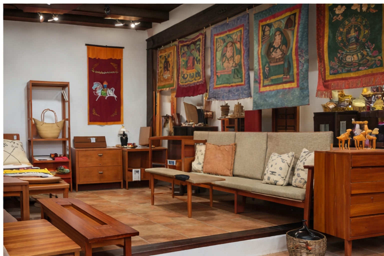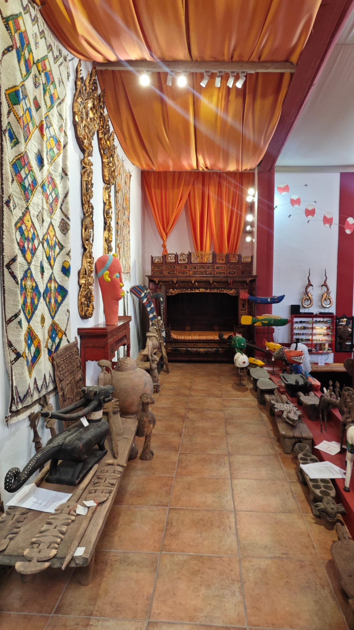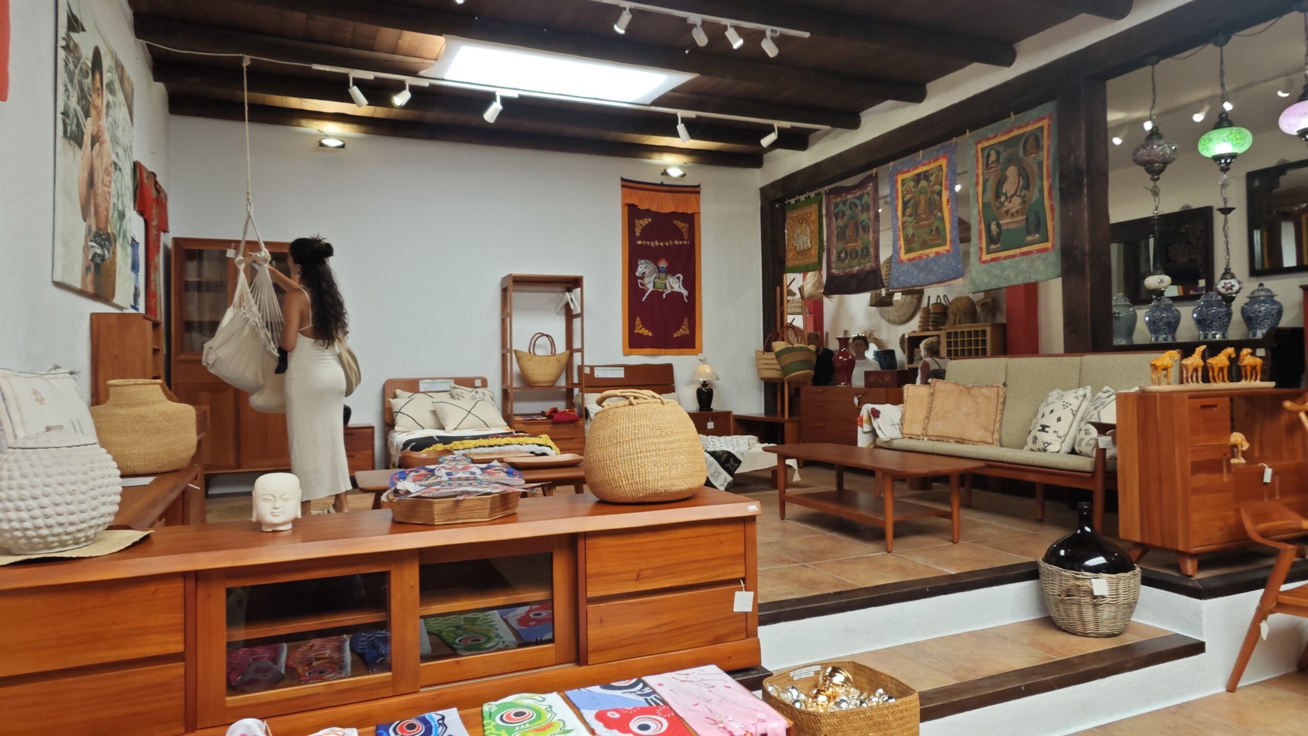 With over 500 m² of floor space, the property offers exceptional scope. The former cinema has been elegantly converted into a shop/showroom dedicated to oriental furniture and antiques, in an atmosphere that is serene, inspiring and unique.
