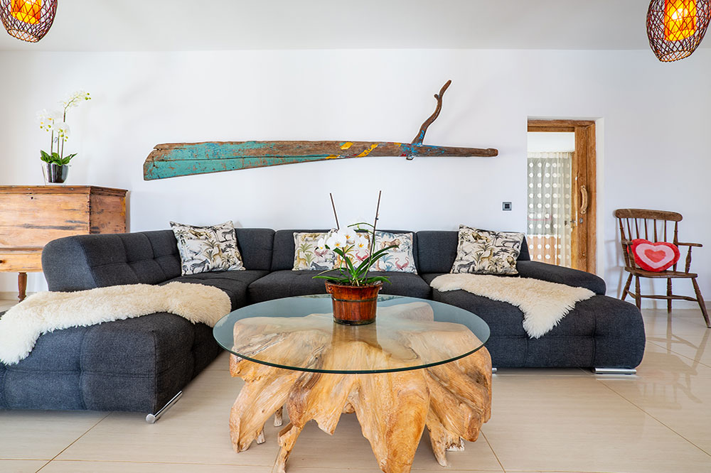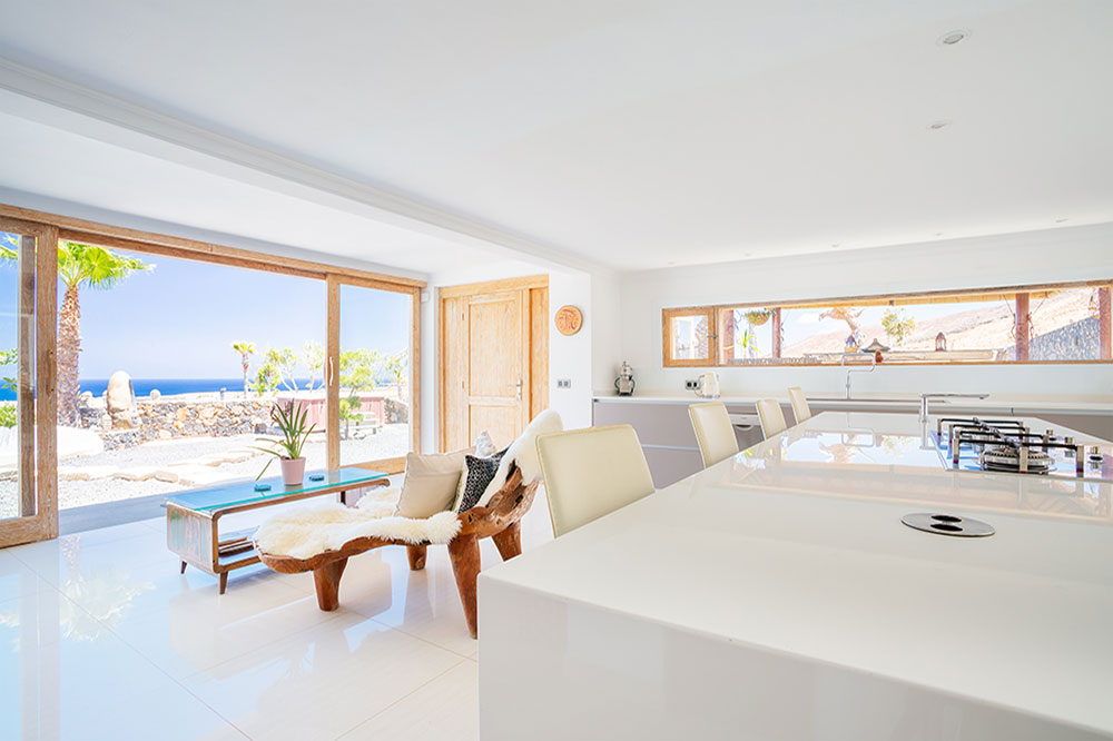 Designed to maximize natural light and views, the villa features generous volumes and a seamless flow between living areas. Large windows create a constant connection with the surrounding landscape. The property includes a fully equipped contemporary kitchen, a spacious dining area and an elevated living room with open views.